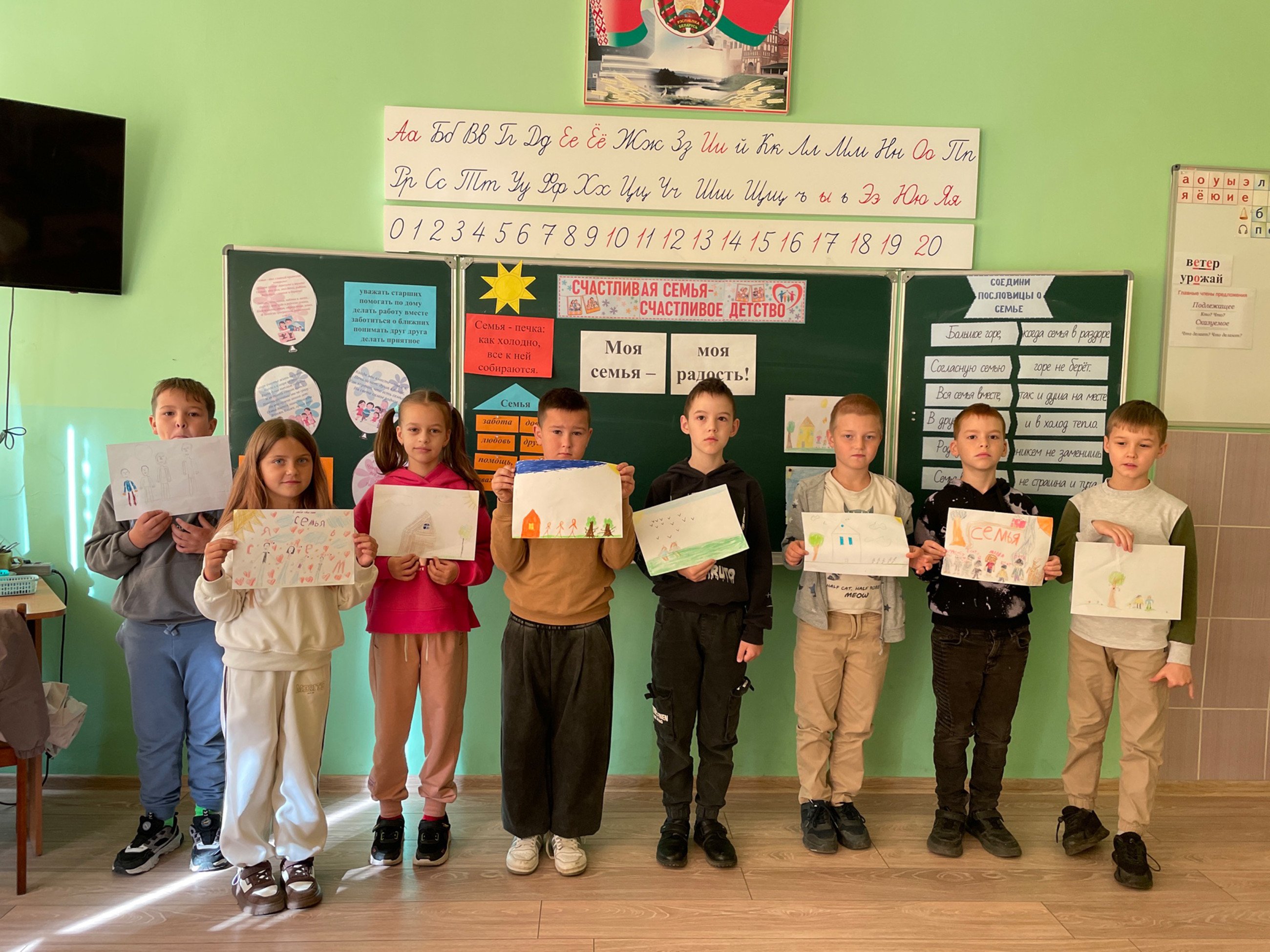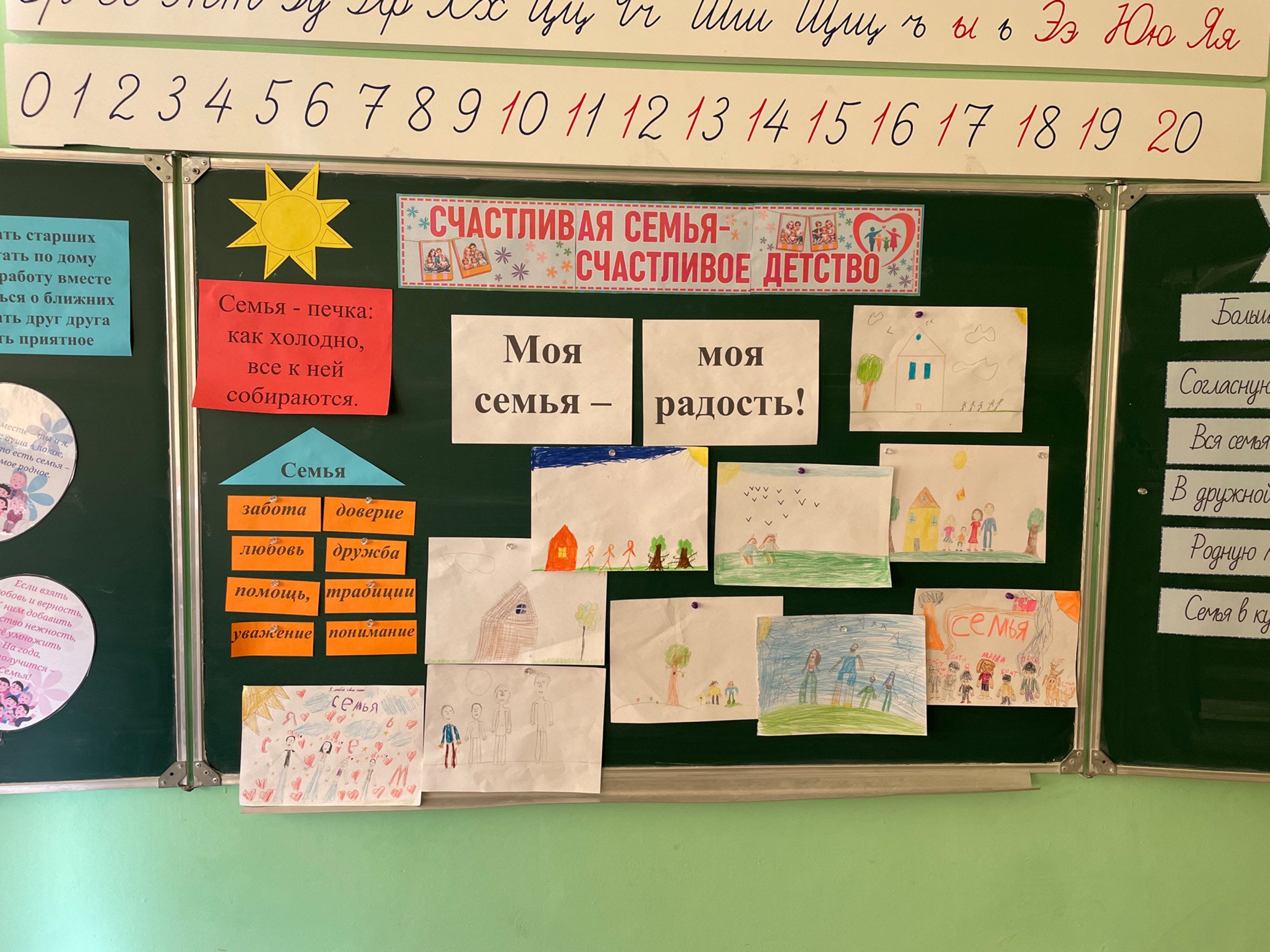 27 сентября в 6-ой школьный день для 3 классов был проведен конкурс рисунков на тему «Моя семья». Отвечая на вопросы, ребята смогли раскрыть роль семьи в жизни каждого человека и пробудили стремление сохранять семейные ценности и традиции. В конце мероприятия каждый нарисовал свою семью.