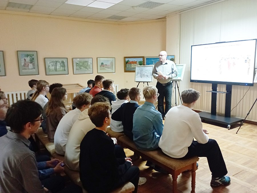 На данном мероприятии с учащимися провёл беседу Талюк Николай Николаевич, старший научный сотрудник УК «Волковысский военно-исторический музей имени П.И. Багратиона».