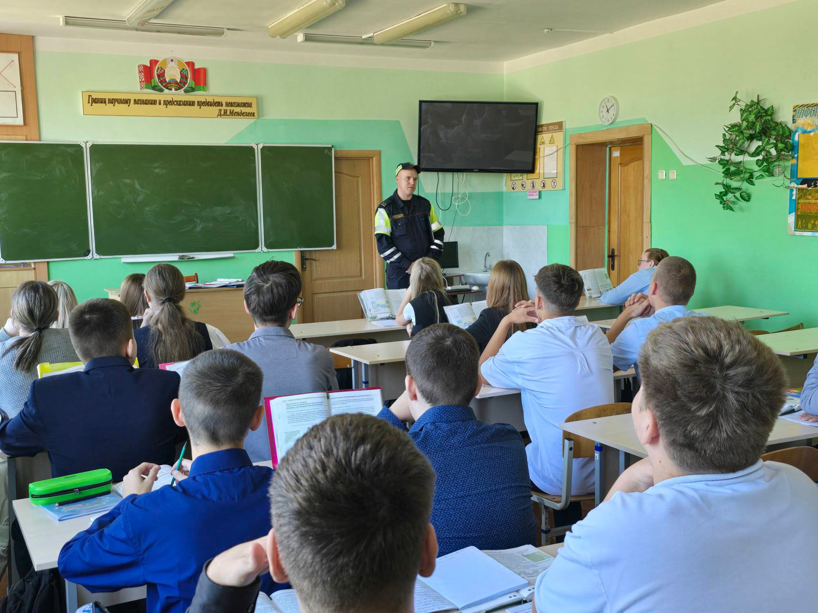 22 сентября сотрудник Волковысского РОВД ДПС ГАИ Трофимчик Михаил Викторович провёл с учащимися 5–10 классов профилактическую беседу. Встреча была посвящена важным вопросам безопасности на дорогах. Михаил Викторович рассказал школьникам о новых правилах ПДД, разъяснил, как важно их соблюдать для обеспечения безопасности всех участников дорожного движения. Также он затронул тему использования электросамокатов и других средств индивидуальной мобильности, объяснив, какие правила необходимо знать и соблюдать при их использовании. Такие встречи помогают формировать у школьников ответственное отношение к собственной безопасности и безопасности окружающих. Мы уверены, что знания, полученные на этой встрече, помогут ребятам стать более внимательными и осторожными на дорогах.