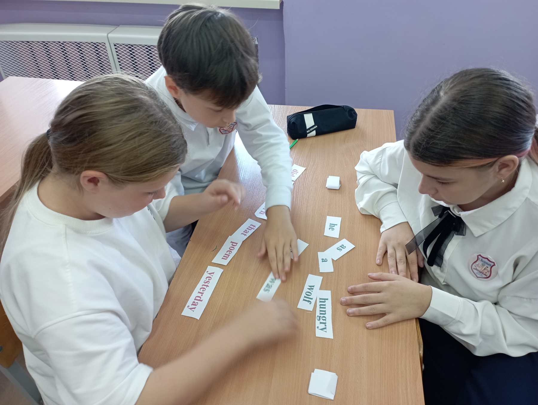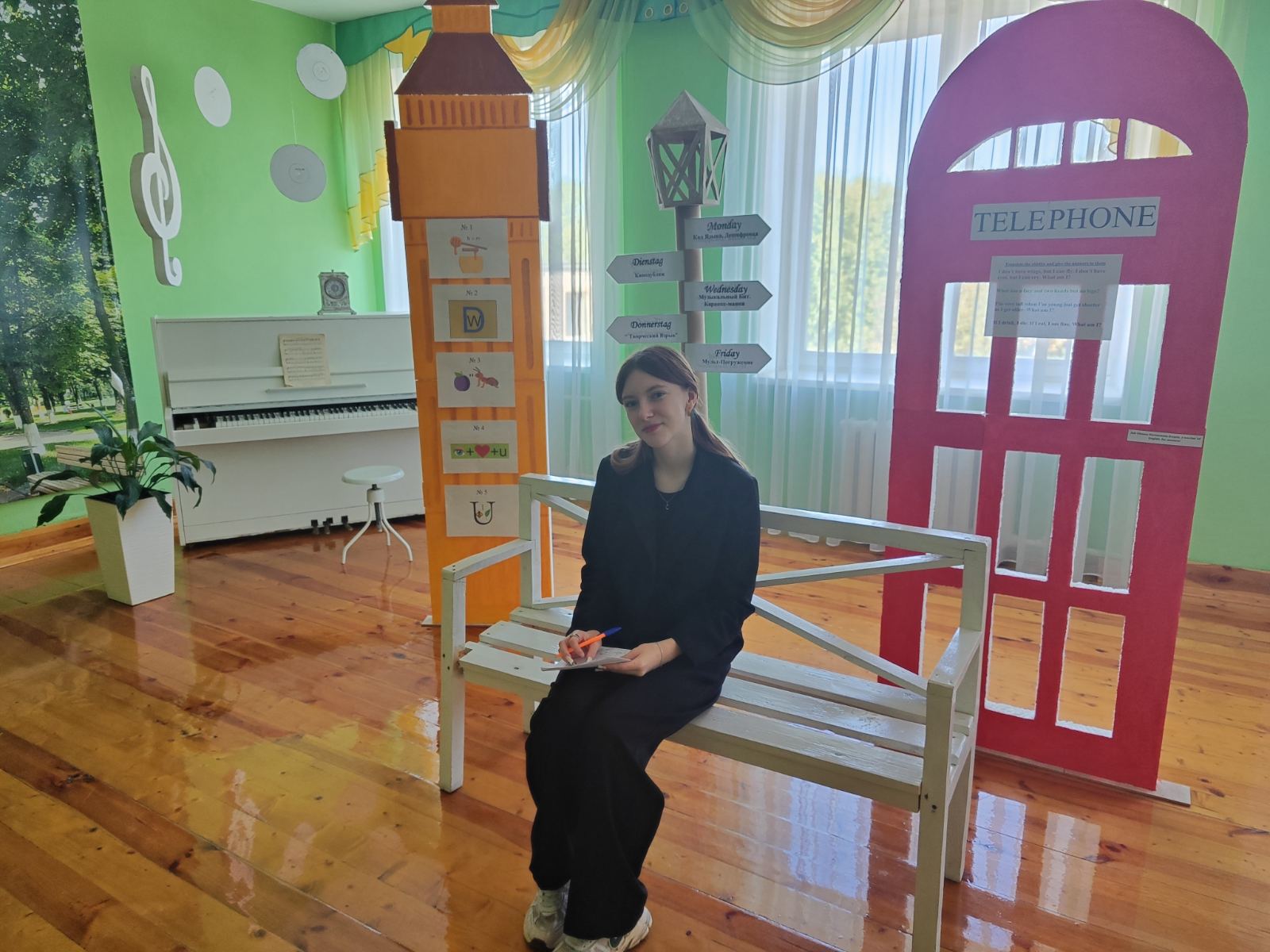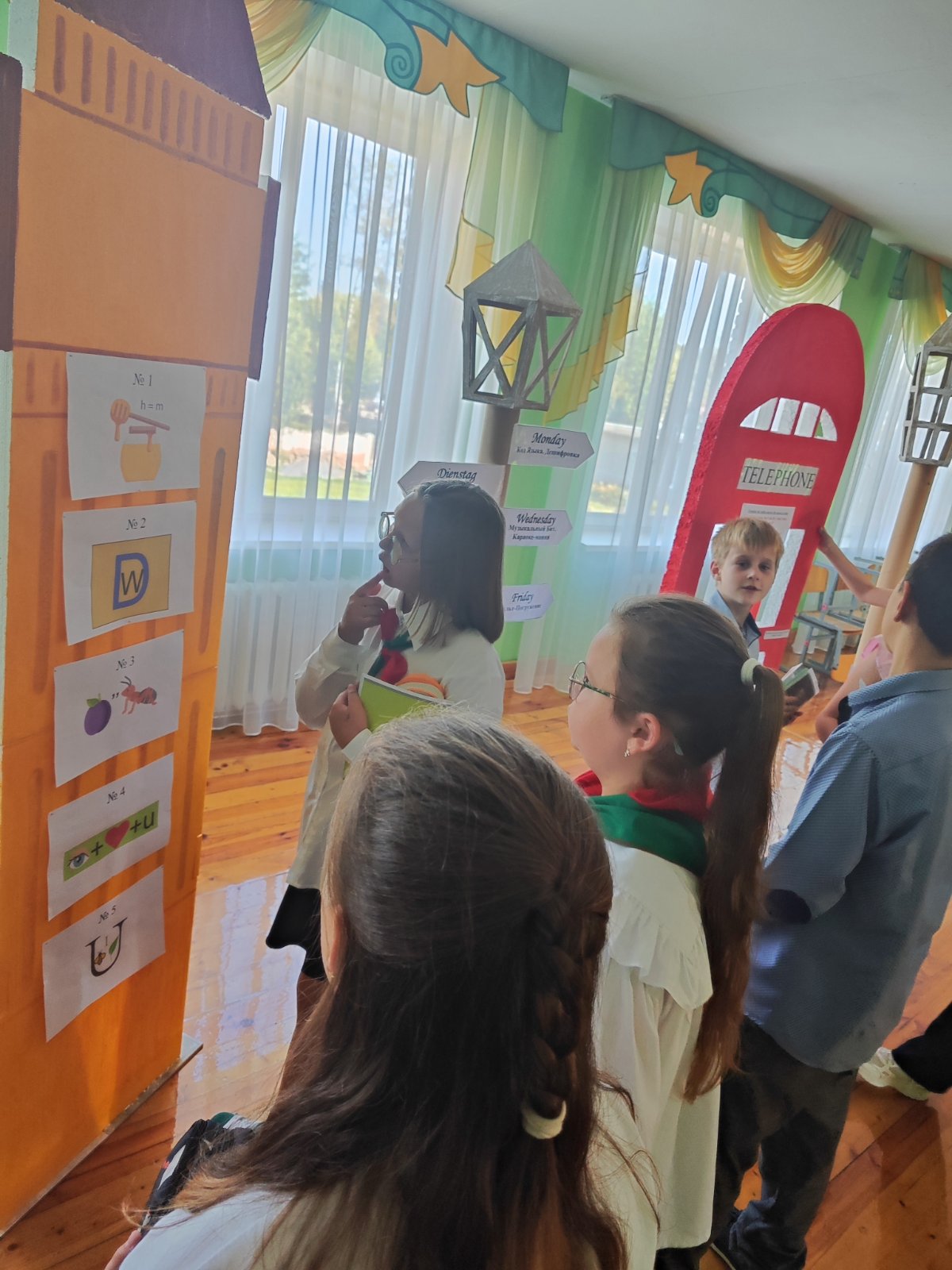 Учащиеся, разделенные на команды, переходили от станции к станции, выполняя различные задания, связанные с музыкой и английским языком: