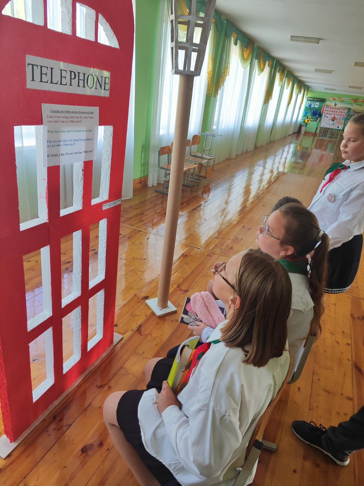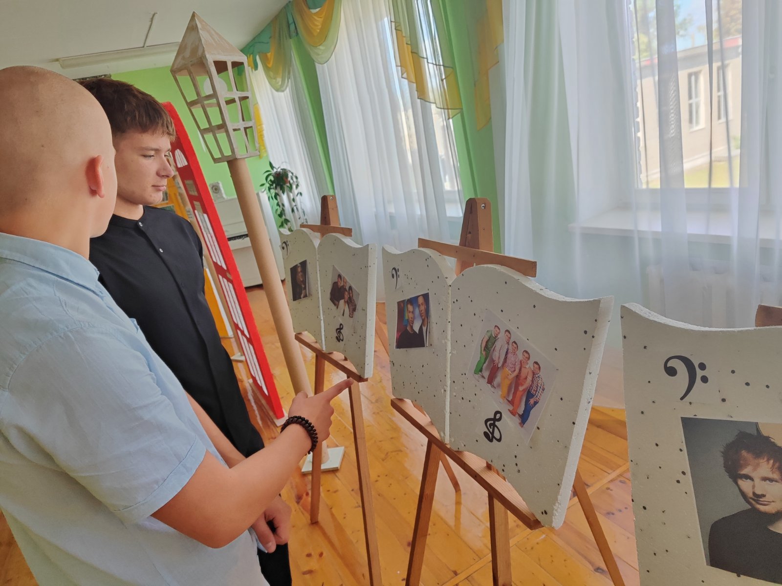 В холле школы была организована выставка фотографий известных американских, британских и белорусских исполнителей. Учащимся предлагалось отгадать, кто изображен на фотографиях.