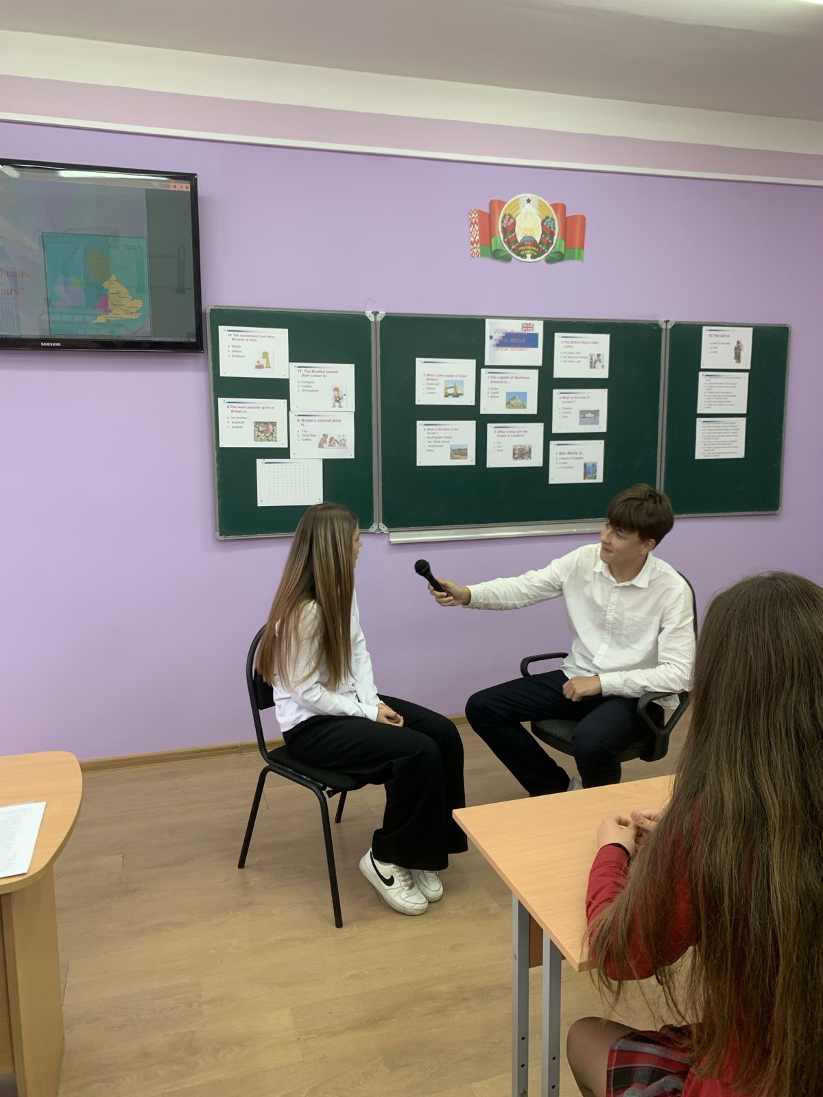 Учащиеся заранее подготовили вопросы об истории, культуре, географии, традициях и известных личностях Великобритании.