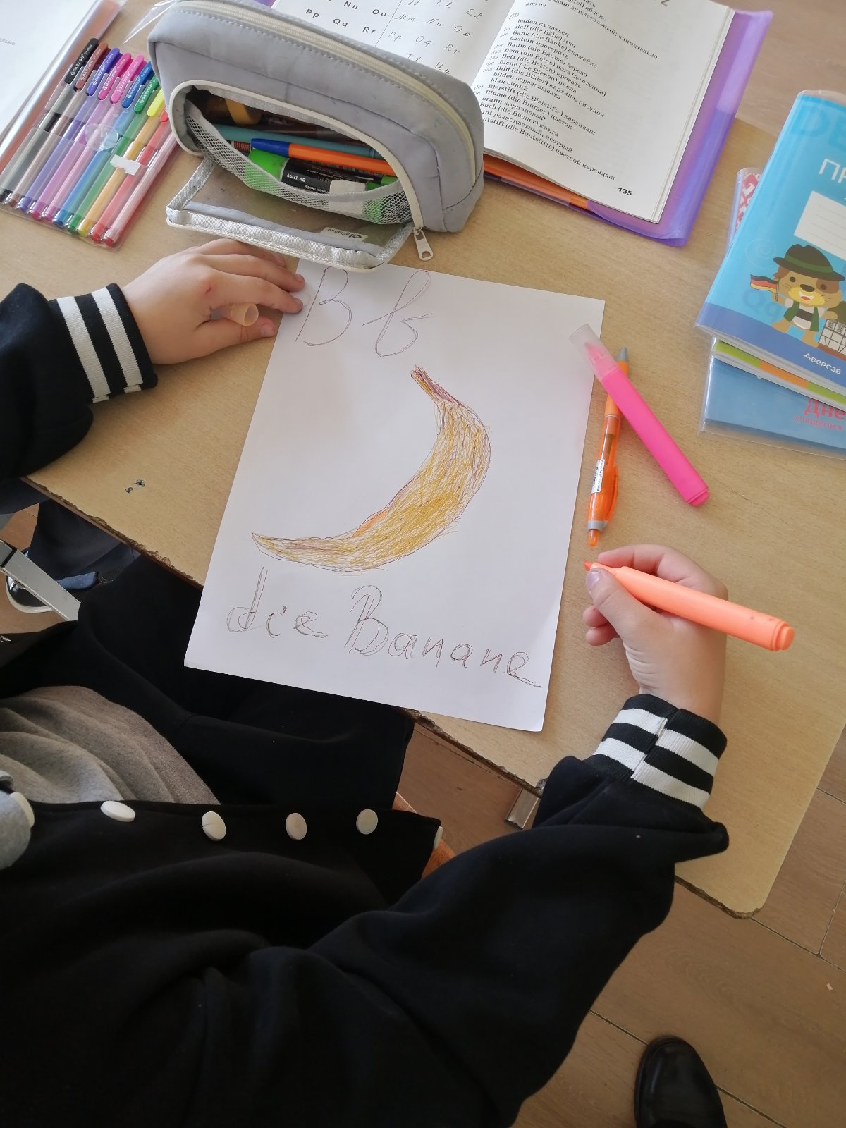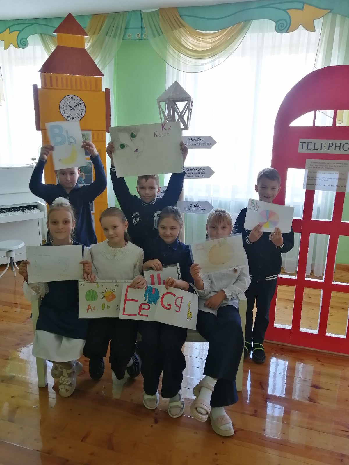 Каждый участник должен был нарисовать букву английского алфавита, используя различные техники и материалы (карандаши, краски, фломастеры, аппликации).